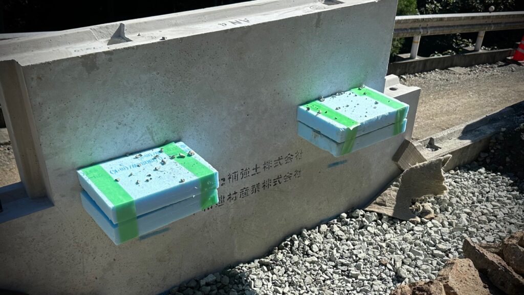 月末はいつも各現場をパトロール。6名だったので車二台で各現場を周ります。もちろん車内での会話も重要な時間で、例えば今後の展望についてや求職者情報の共有、地域行事の確認など、仕事をスムースに進めるために、知っていると便利な会話をします。それでも数時間走り続けると会話も少しずつ減るので、車内でするオススメのトークテーマあれば教えてください。さて、敷水の現場でテールアルメでの擁壁の裏にある突起物で頭をぶつけたり服に引っかかってしまうヒヤリハットを教えてもらいました。確かに鋭利な突起物なので一歩間違えば出血してしまいます。そこで・・