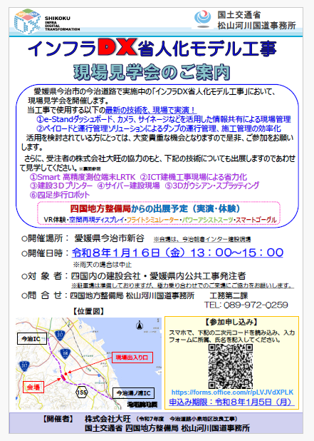 車中では真面目に建設業の未来について話をしたりしています。弊社も愛媛県南予地域の中小企業の中では建設業のICT化を進めている側ですがまだまだDX化できる伸びしろもあります。そこで県内でも県外でもいろいろと視察も行くのですが、今回の車中では今治で開催されるDX見学会についてが多く語られていました。